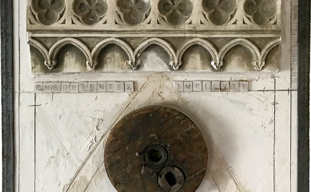 Magnificat, 2011. 251⁄4” x581⁄2” x 21⁄2” acrylic and found objects in plaster on wood panel. Custom-welded metal frame. For sale. 900. I created this Magnificat in 2011 at the request of Alamo Heights Methodist Church in San Antonio, Texas for their Advent series.